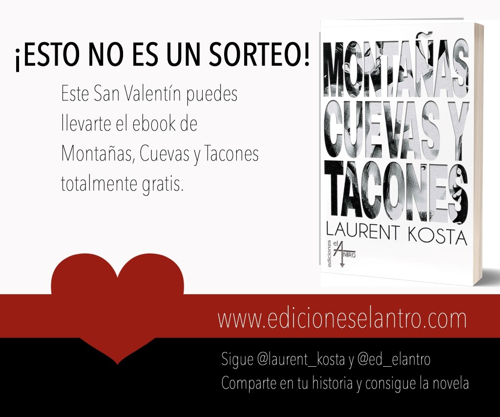 ¿Aún no has podido leer una de mis novelas? Esta es tu oportunidad… para San Valentín te regalamos una copia digital de MONTAÑAS, CUEVAS Y TACONES. No es un sorteo!! Todo el que participe gana!! Solo tienes que seguir unos pasos muy sencillos:
